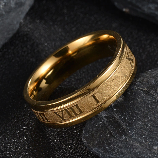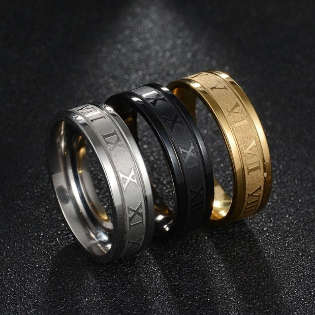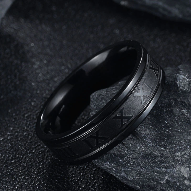 Dégageant de sophistication et de style, Numeral présente des chiffres romains classiques de 1 à 12 autour de la bande comme un clin d'oeil au passé, tandis que son design élégant et moderne est parfait pour le présent. Fabriquée avec des matériaux de haute qualité, cette bague assure durabilité et longévité. Son design léger le rend confortable à porter toute la journée, et ses trois couleurs élégantes - or, argent et noir - le rendent facile à assortir à n'importe quelle tenue.