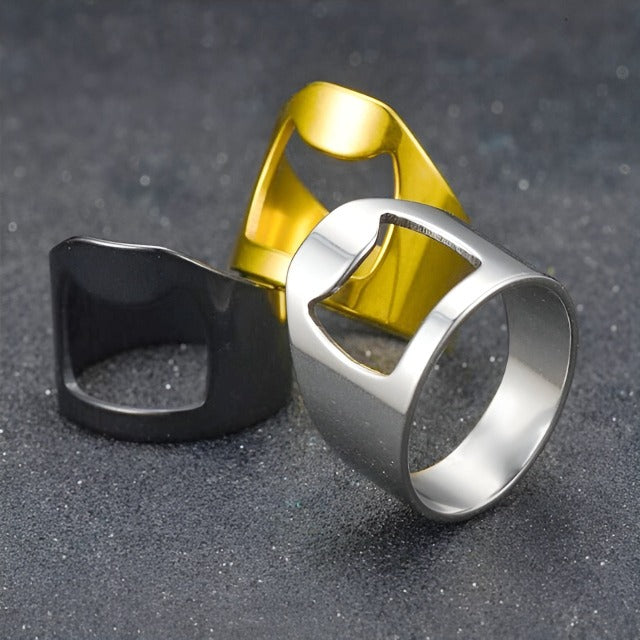 Une bague élégante en acier inoxydable qui n'est pas seulement une déclaration de mode, mais aussi votre secret pour ouvrir une bouteille sans effort ! Cette bague confortable est disponible dans des couleurs cool comme l'argent, l'or et le noir, donnant à votre look une touche de quelque chose de spécial. Plus besoin de lutter ou de chercher un ouvre-bouteille - vous l'avez sur votre doigt.